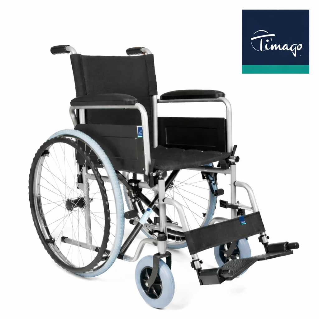 BASIC TIM letvægtskørestol er fremstillet med en robust stålramme, som giver god stabilitet uden at gå på kompromis med vægten. Det ergonomiske sæde sikrer en behagelig siddestilling, mens de aftagelige fodstøtter gør det lettere at komme ind og ud af stolen. De solide hjul giver en stabil kørsel og kræver minimal vedligeholdelse.
