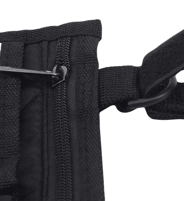 Tasken er fremstillet i slidstærkt polyester og tåler daglig brug i både inde- og udemiljøer. Den vejrbestandige overflade beskytter indholdet mod snavs og let regn, mens velcrolukningen gør det nemt at åbne og lukke – også med nedsat håndstyrke. En fleksibel og sikker løsning til dig, der ønsker funktionalitet og tryghed i hverdagen.